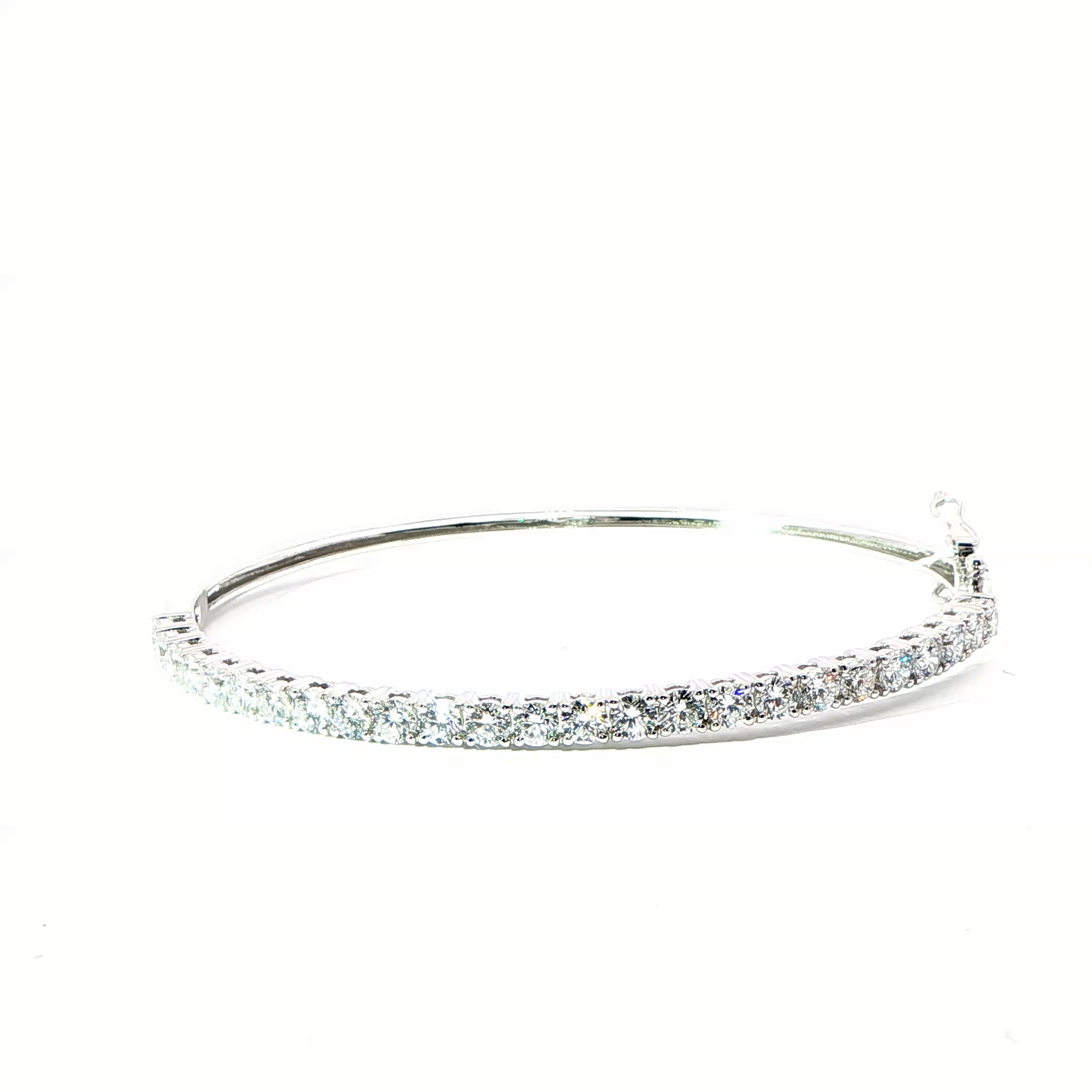 Elegantly crafted in shimmering white gold over silver, this classic tennis bracelet showcases a seamless row of round cut diamonds. Each diamond is meticulously set to maximize brilliance and sparkle, resulting in a timeless and sophisticated piece. Its streamlined design ensures comfortable wear and effortless style, making it perfect for any occasion.